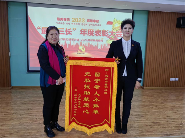 近日,延吉市“笑夕陽”養(yǎng)老院負(fù)責(zé)人為春陽社區(qū)送來了一面“留守老人不孤單,無私援助獻(xiàn)愛心”的錦旗,對社區(qū)“助老救困”的行為表示感激和贊揚(yáng)。