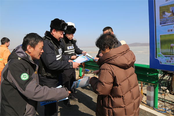 為營(yíng)造全民參與候鳥(niǎo)保護(hù)的濃厚氛圍,琿春森林公安分局通過(guò)傳統(tǒng)宣傳與新媒體結(jié)合的方式,大力開(kāi)展愛(ài)鳥(niǎo)護(hù)鳥(niǎo)宣傳活動(dòng)。在主要觀鳥(niǎo)區(qū)向攝影者和游客發(fā)放宣傳單,普及候鳥(niǎo)保護(hù)知識(shí);深入村屯農(nóng)戶家中開(kāi)展普法宣傳,增強(qiáng)群眾法律意識(shí);在候鳥(niǎo)聚集區(qū)域設(shè)立大型宣傳牌,在道路沿線懸掛宣傳橫幅、張貼宣傳標(biāo)語(yǔ),營(yíng)造濃厚的保護(hù)氛圍,有效提升了全社會(huì)的護(hù)鳥(niǎo)意識(shí)。