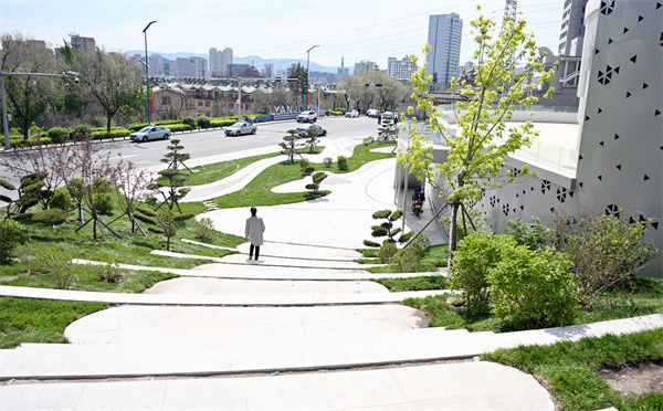 游園內修剪有型的樹木、造型獨特的小品、滿目皆綠的草地、視野開闊的觀景臺,與發展大坡相輔相成,成為市民、游客拍照打卡的最新風景。