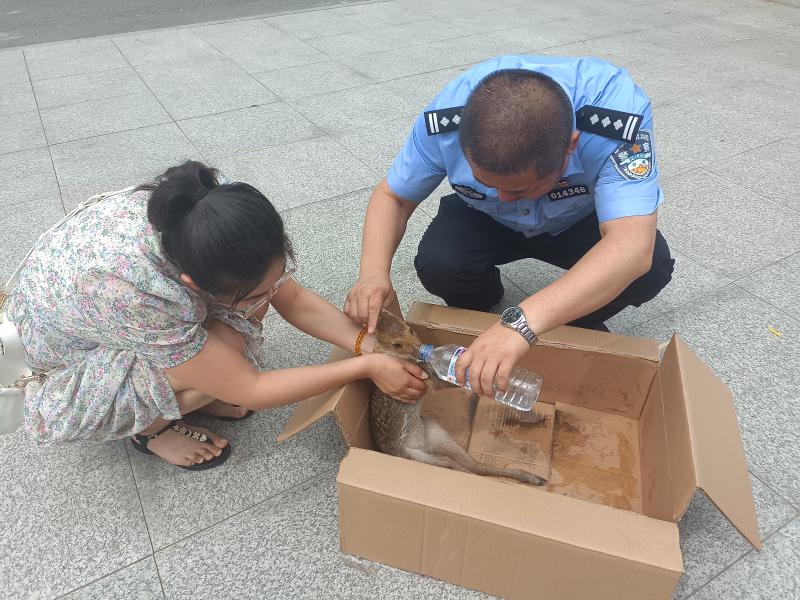 當(dāng)日,西溝森林派出所民警在巡護(hù)過程中接到居民報(bào)警,稱發(fā)現(xiàn)一只狍子幼崽被困水中。民警迅速趕赴現(xiàn)場(chǎng),只見這只“小家伙”正在水中拼命掙扎,因體力不支逐漸下沉,情況危急。民警與熱心群眾立即展開救援,小心翼翼地將狍崽從水中救出。被救后,幼崽渾身濕透、瑟瑟發(fā)抖,且周邊未發(fā)現(xiàn)成年狍子的蹤跡。民警隨即將它帶回派出所,用毛巾擦干其身體,并準(zhǔn)備了溫牛奶進(jìn)行喂食。由于受到驚嚇且體力消耗過大,小狍崽顯得十分虛弱,民警耐心予以安撫,避免其再次受到刺激。為保障科學(xué)救護(hù),派出所第一時(shí)間聯(lián)系動(dòng)物保護(hù)部門進(jìn)行移交。經(jīng)專業(yè)人員檢查,狍崽生命體征平穩(wěn),但因年齡太小,尚不具備獨(dú)立野外生存能力,需人工照料一段時(shí)間,待其具備生存條件后再放歸自然。