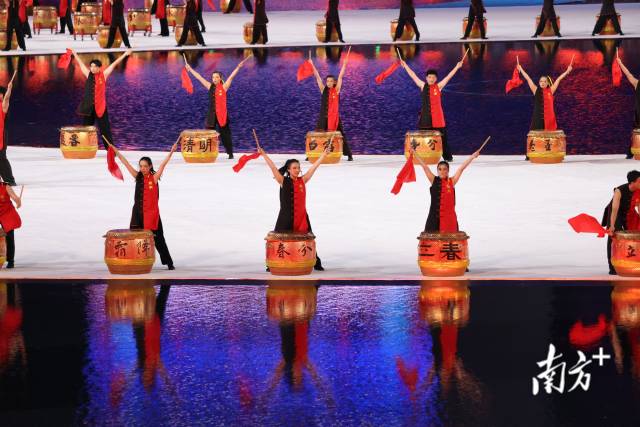 11月9日,第十五屆全運會在廣州開幕,潮州二十四節令鼓震撼開場,150名青少年鼓手以青春之鼓擂動傳統之聲,點燃現場氣氛。南方+記者 蘇韻樺 攝