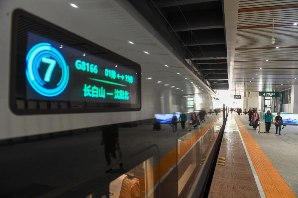 9月28日,旅客在長(zhǎng)白山站陸續(xù)登上G8166次列車。(新華社記者 張楠 攝)