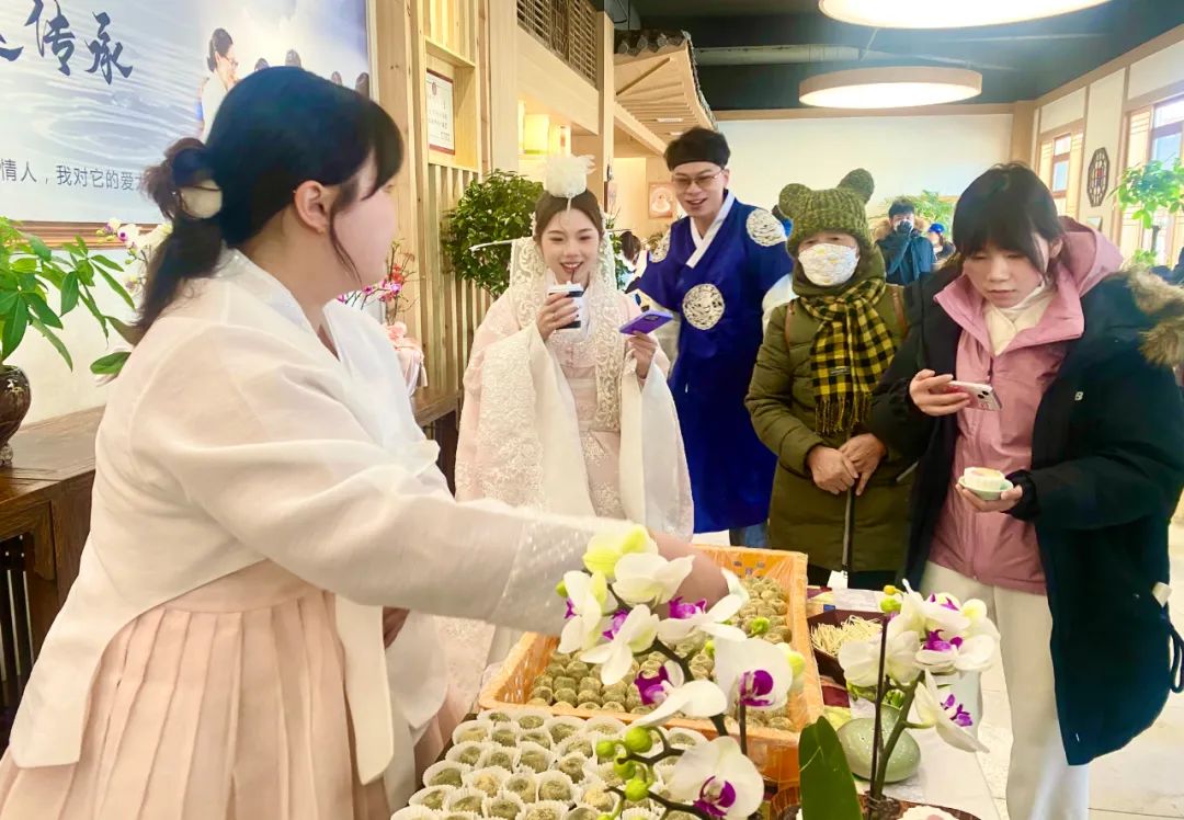 中國朝鮮族民俗園通過舉辦第十屆延吉國際冰雪旅游節開幕式、首屆延吉花燈節等多項活動,將朝鮮族仿古建筑、冰雪文化和光影技術相融合,打造冰雪景觀區、民俗展示區、燈光展示區,引入宮廷米糕、辣白菜、朝鮮族禮儀、民宿等新業態,結合“SHOW春香”歌舞劇、朝鮮族長鼓舞、伽倻琴等特色民俗演繹,讓中國朝鮮族民俗園成為最受青年游客喜愛的網紅打卡新地標。