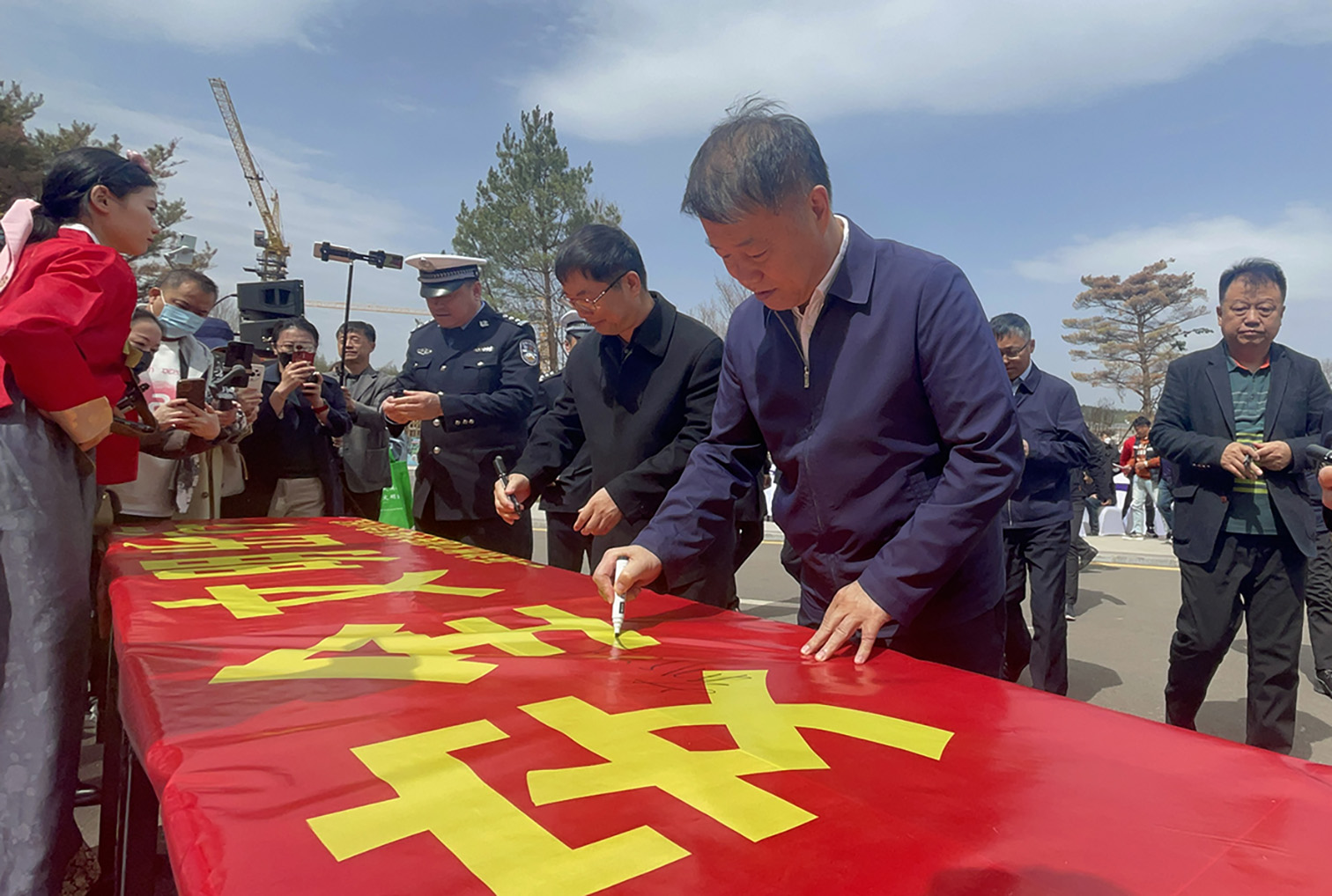 交通安全事關(guān)人民群眾生命財產(chǎn)安全,事關(guān)經(jīng)濟社會發(fā)展和穩(wěn)定大局,更是我州旅游產(chǎn)業(yè)高質(zhì)量發(fā)展的前提和保障。在活動現(xiàn)場,美團外賣騎手代表、旅游企業(yè)負(fù)責(zé)人代表等重點行業(yè)受邀人員出席,通過宣讀倡議書、交通知識有獎問答、在印有“暢游大美延邊 安全文明出行”橫幅上簽字、參觀交通違法及事故案例警示教育展板等形式,加強交通安全法律法規(guī)學(xué)習(xí),提高駕駛?cè)说慕煌ò踩庾R,共同營造旅游經(jīng)濟安全發(fā)展、高質(zhì)量發(fā)展的良好氛圍。